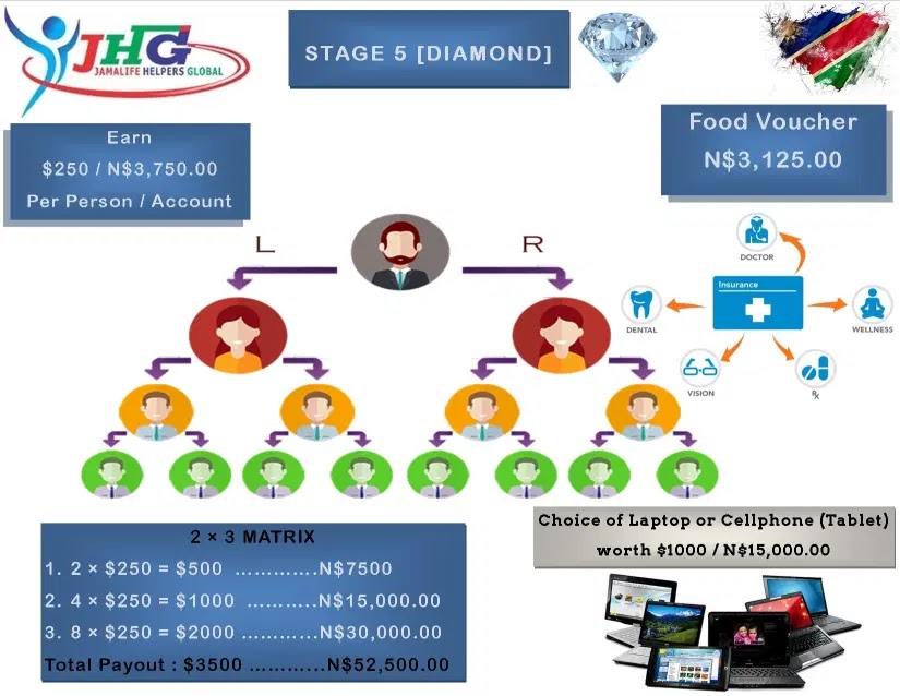 Pour chaque personne qui vous rejoint ici, votre compte sera crédité de 20.000$, ce qui donne un total de 280.000 $ + une Range Rover d’une valeur de 170.000$ + un kit alimentaire de 400$ + assurance médicale + un fond de maison de 300.000 $ et à partir de cette étape, à chaque fois qu’une personne de votre lignée fini son étape 8, vous avez 20.000$ et ceci, à l’infini.Merveilleux !!!! N’est-ce pas ???Alors les amis, avec tout ce qui précède, je ne me tairai pas. Non!! Je ne peux me taire. Je parlerai encore et encore de Jamalife Helpers Global !!!! Jusqu’à ce que tout le monde parvienne à la liberté financière.