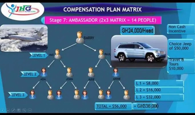 Les 14 personnes du stage 5 vous rejoignent et vous avez 800$ par position, ce qui donne 14×800=11.200$ plus une voiture de 13.000$ + kit alimentaire de 300$ + Assurance médicale. Et vous passez à l’étape 7👇🏽👇🏽👇🏽